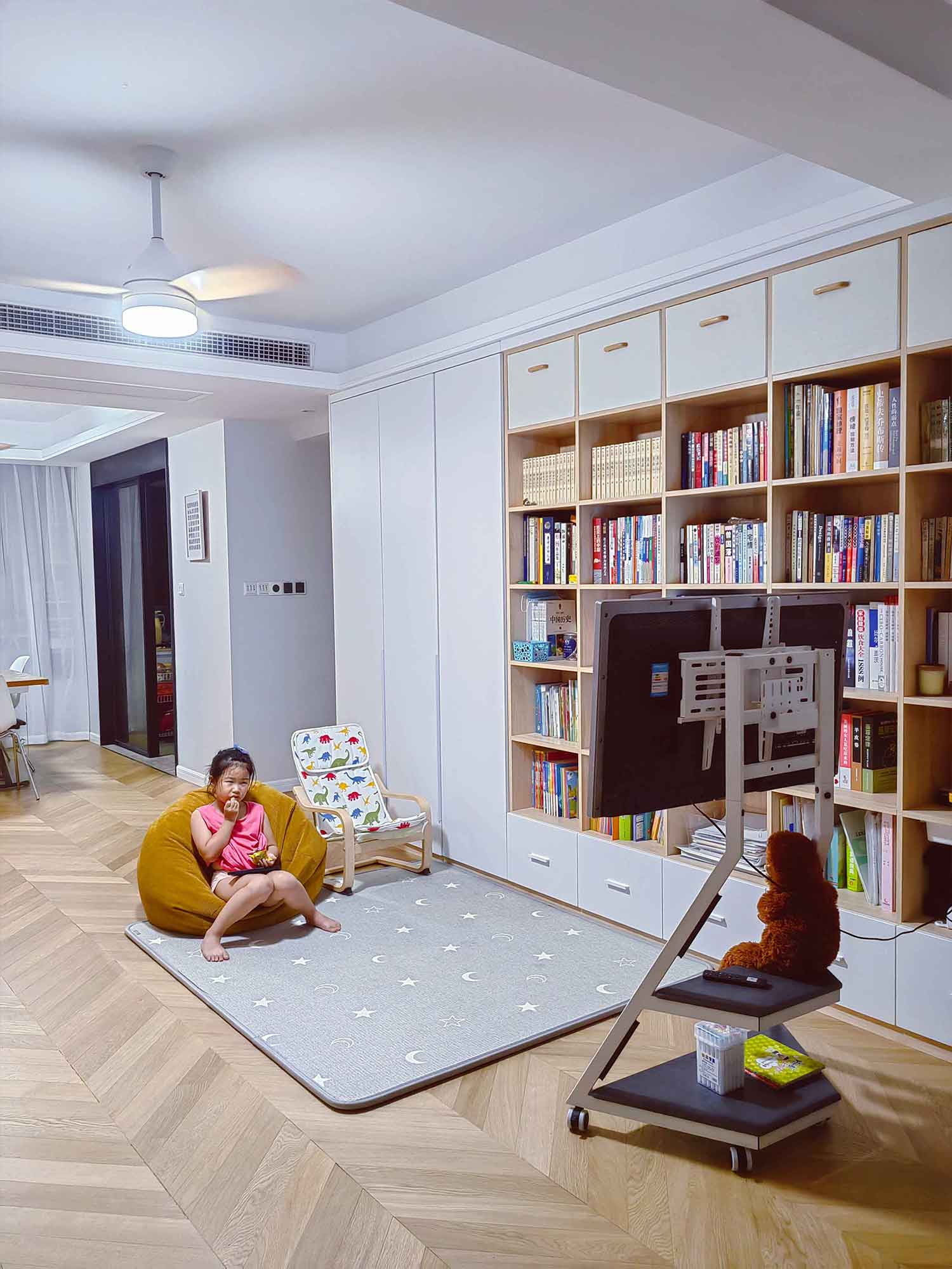 リビングに置いて、棚をつけて、テレビの周りをきれいにして、リラックスして静かな時間を楽しむことができる