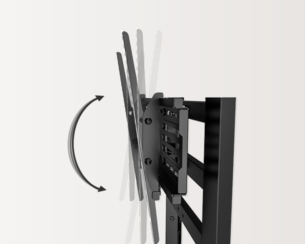 角度が左右に±15°、上5°~下15°の回転調節機能が付いて、座っていても、立っていても、最適な視野角を提供する。