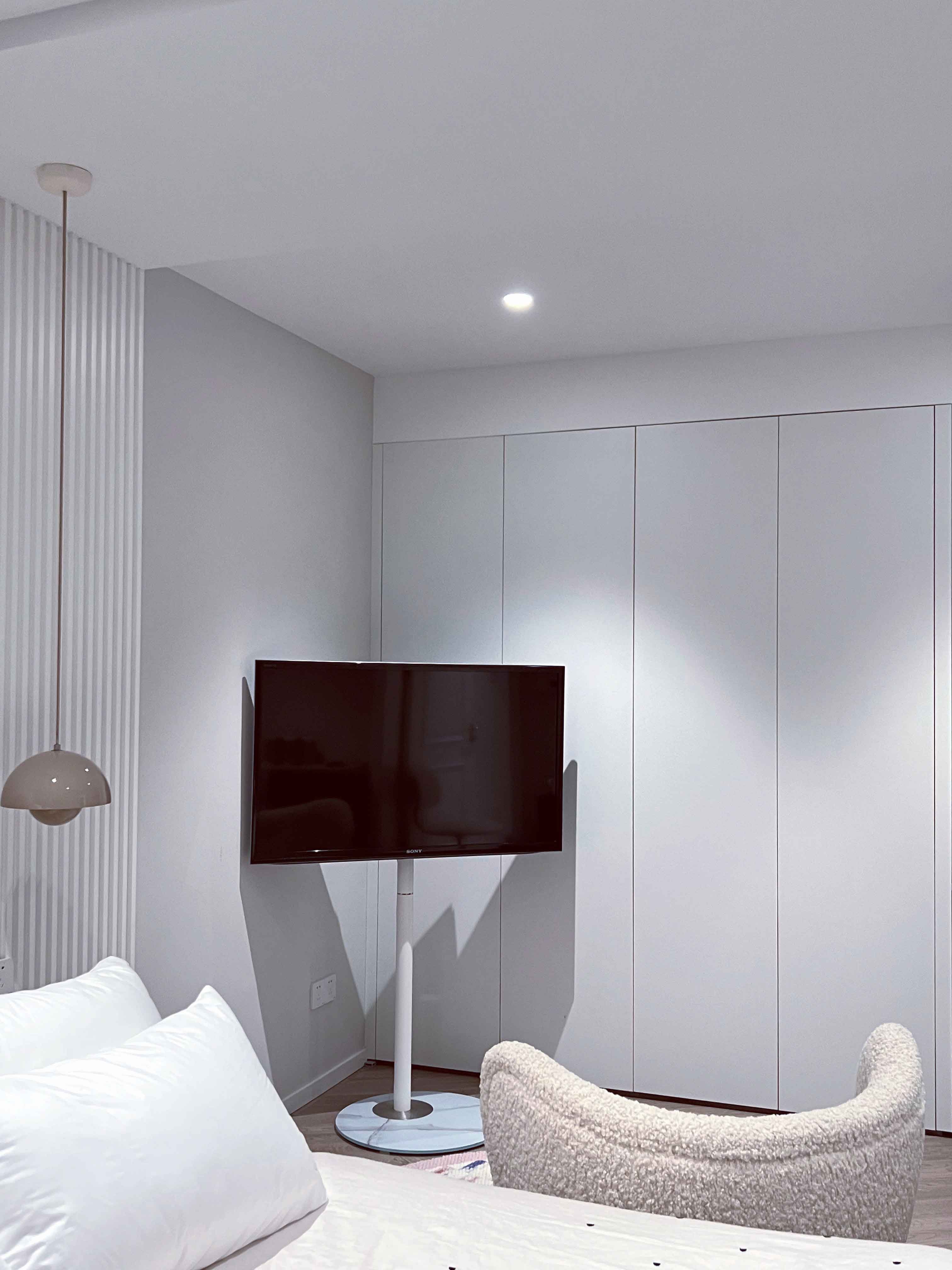 テレビ取付金具は一体式なので、たった3歩だけで工事完了。