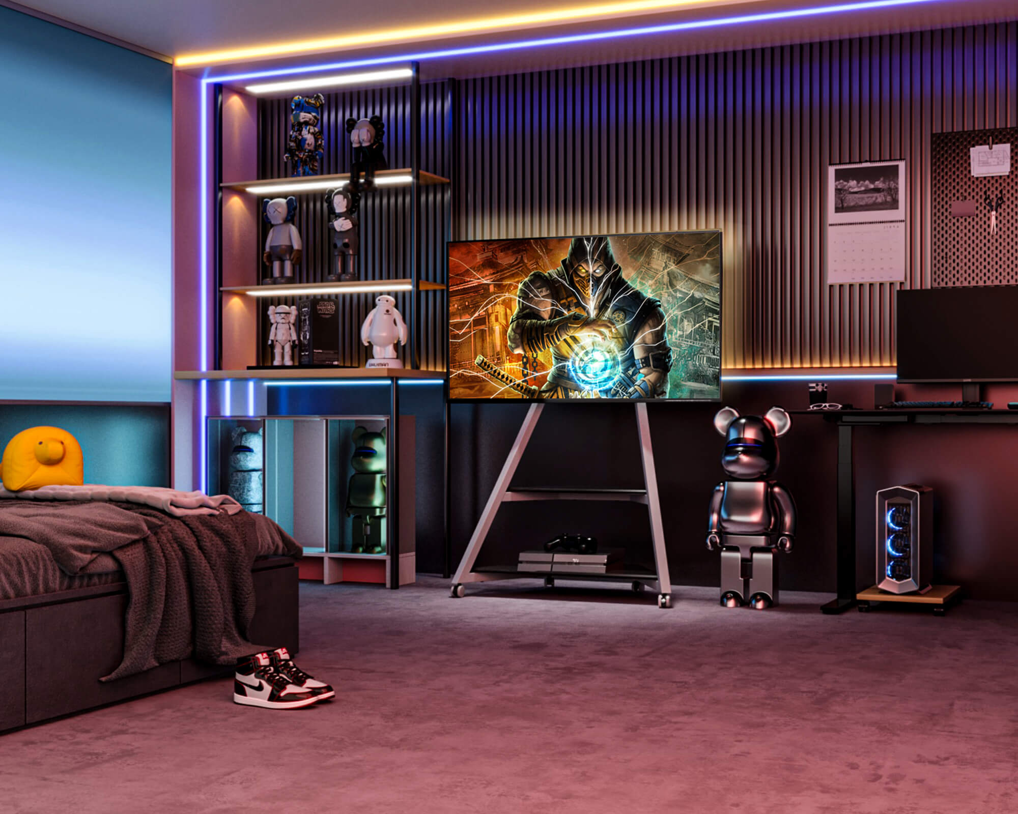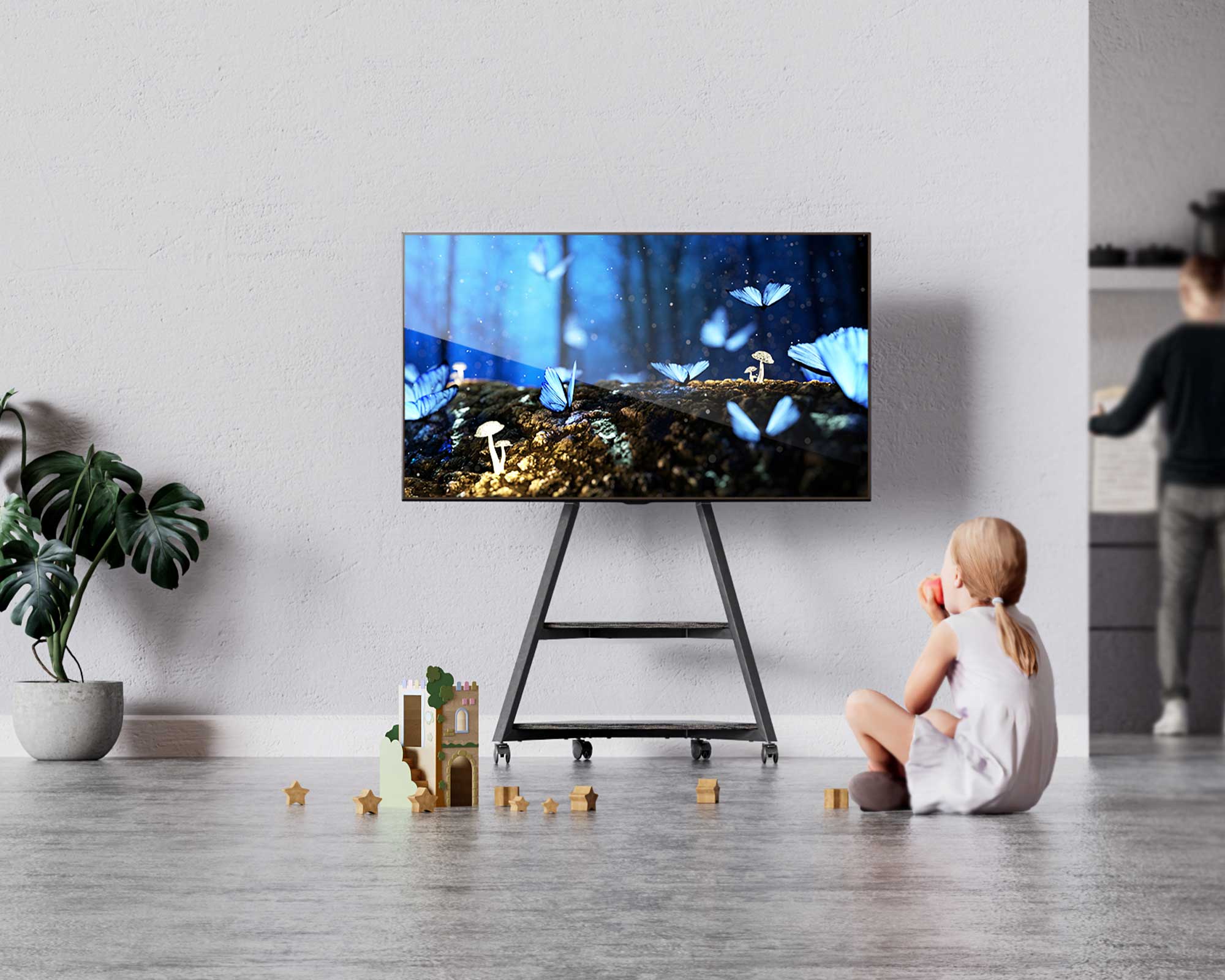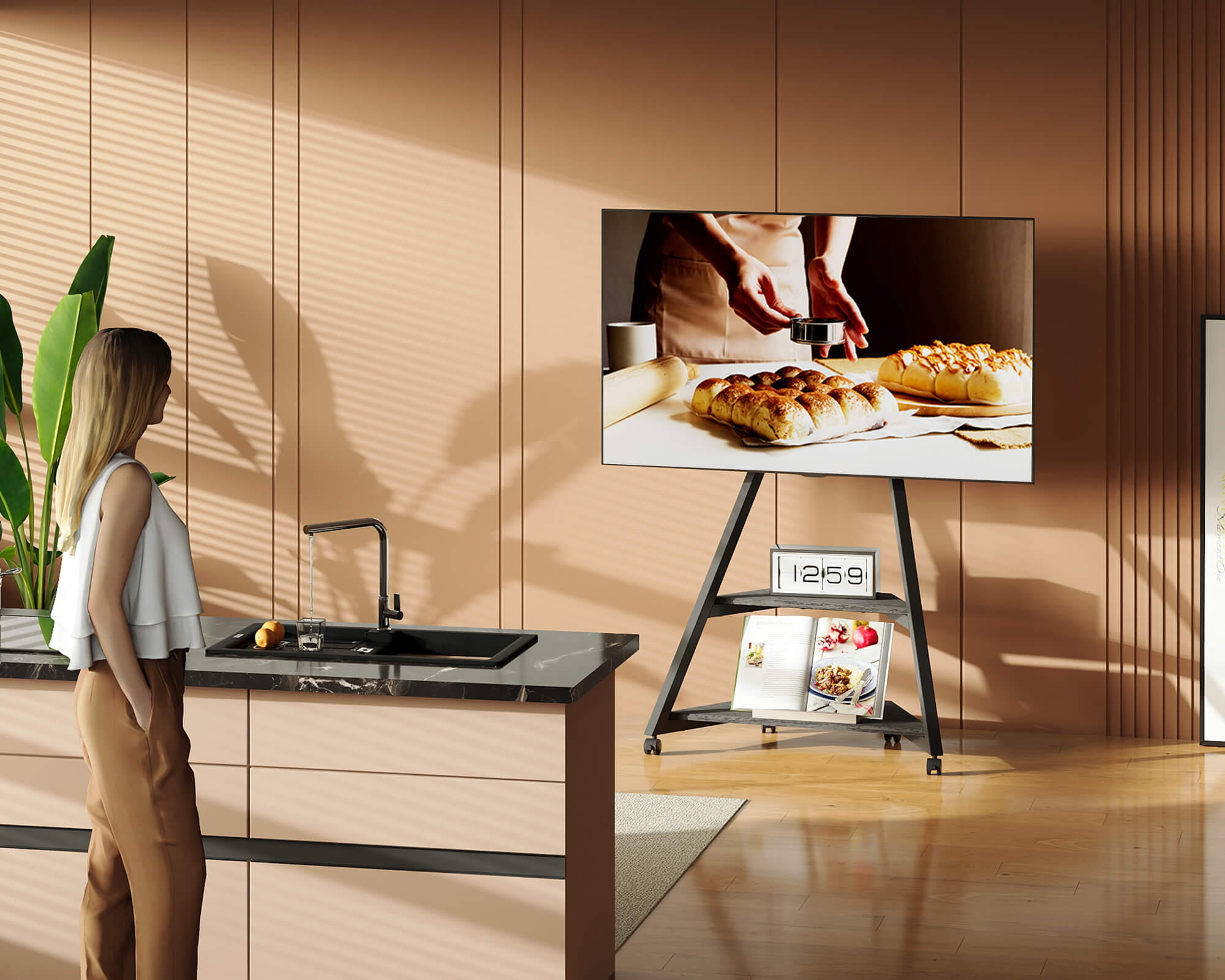 - 移動と固定の両方に対応―移動可能なキャスターが付いており、視野角を調整したり、掃除をする際にも簡単に対応できます。