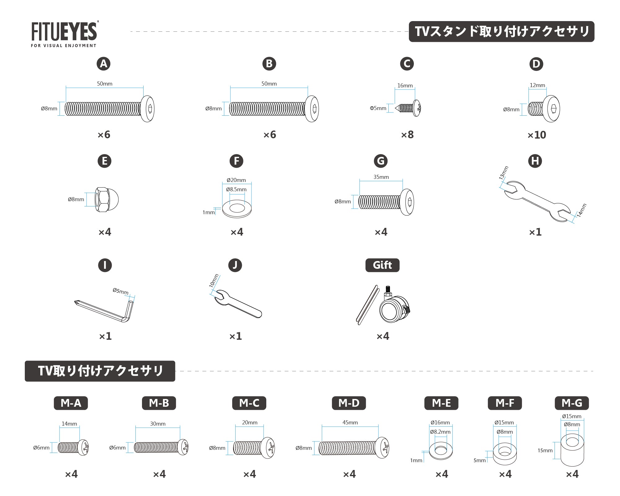 - 細部にこだわったデザインで便利さを追求―エッフェルシリーズのテレビスタンドには、後部にHDDホルダーが付属しています。また、複数種類のネジをパッケージに同梱しており、異なるテレビに対応できるようになっています。