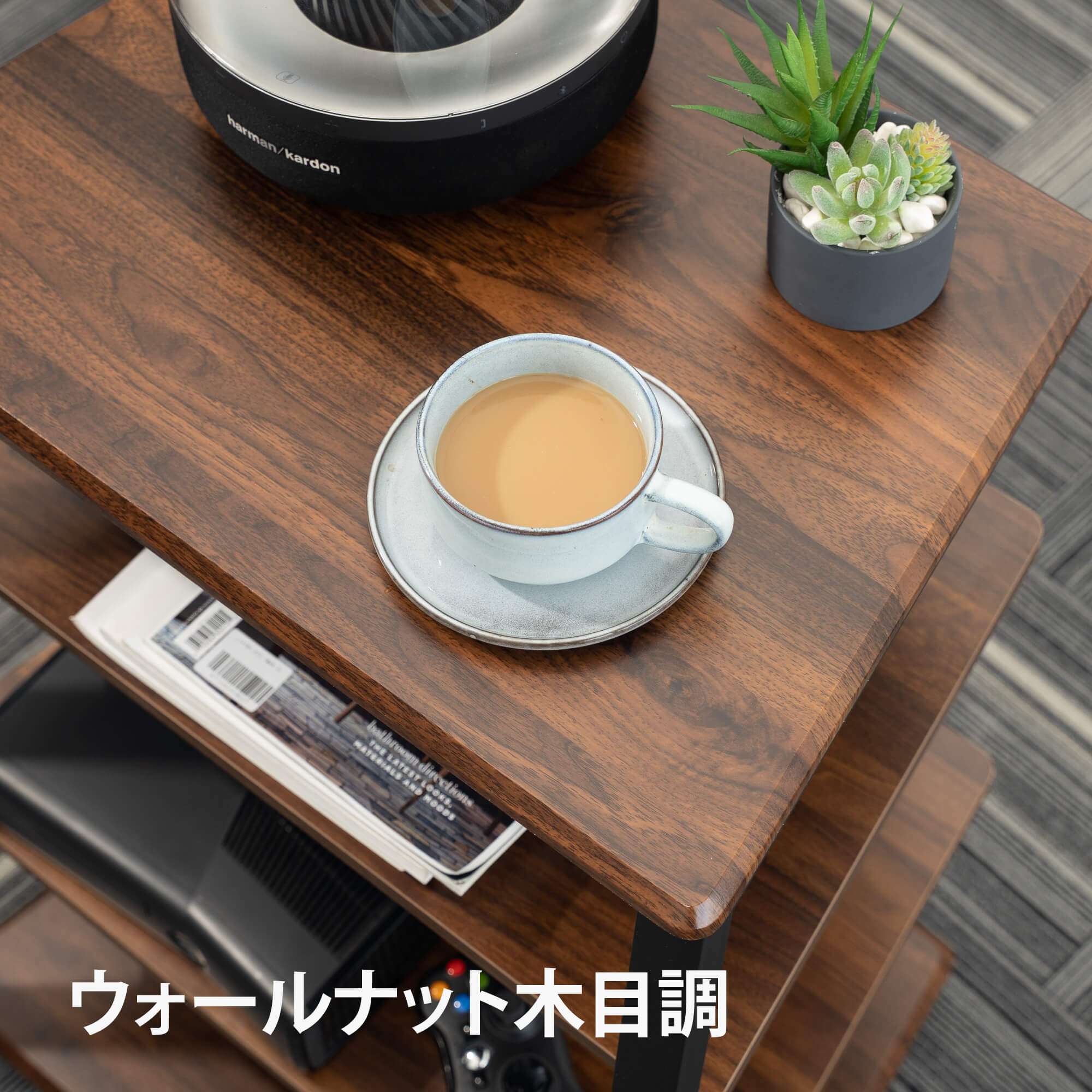 重量感があるスチール製フレームと家庭の雰囲気に融合する木目調仕上棚板、頑丈でお手入れも簡単です。ガラス製品のリスクから避けて、ご遠慮なく使用できます。