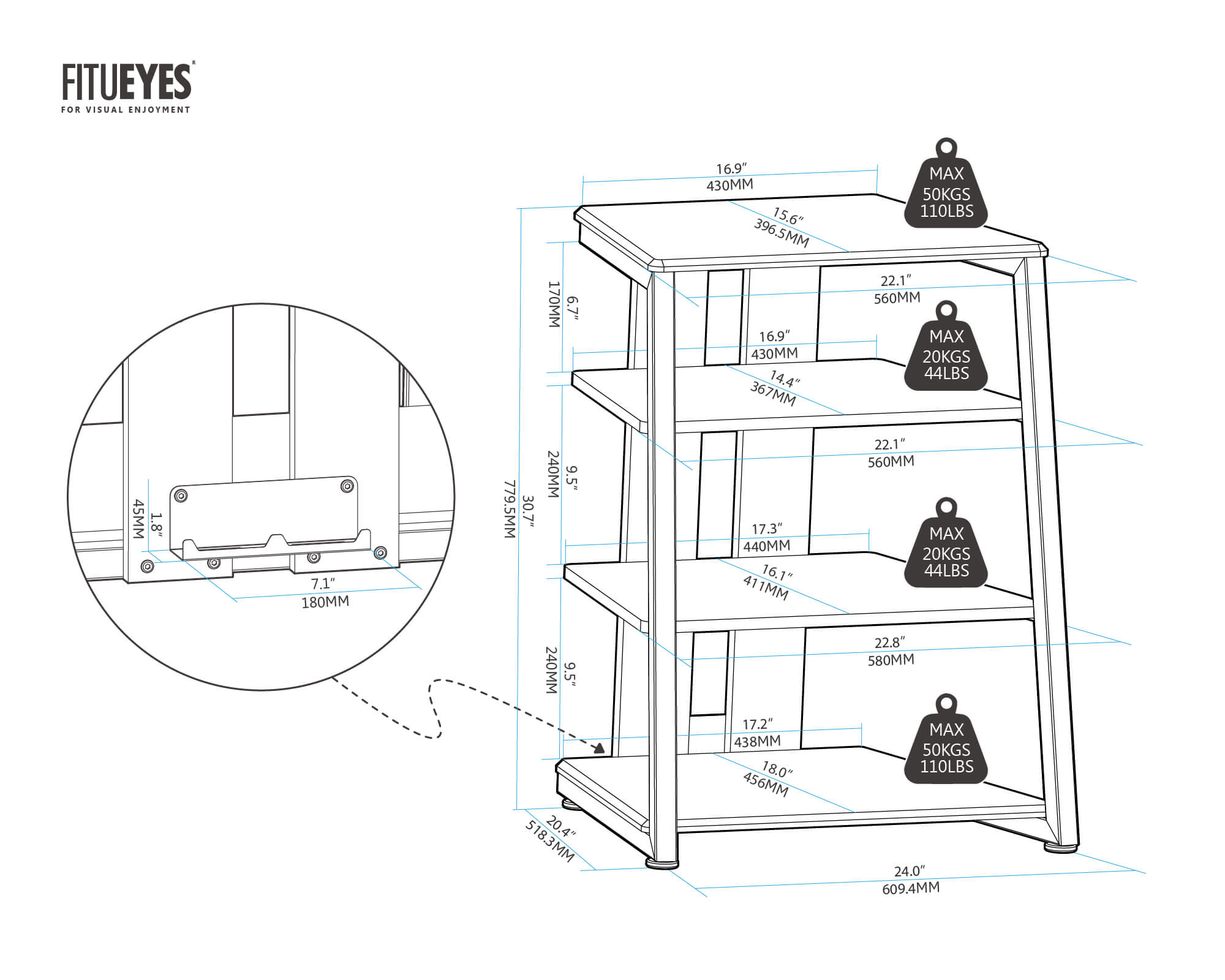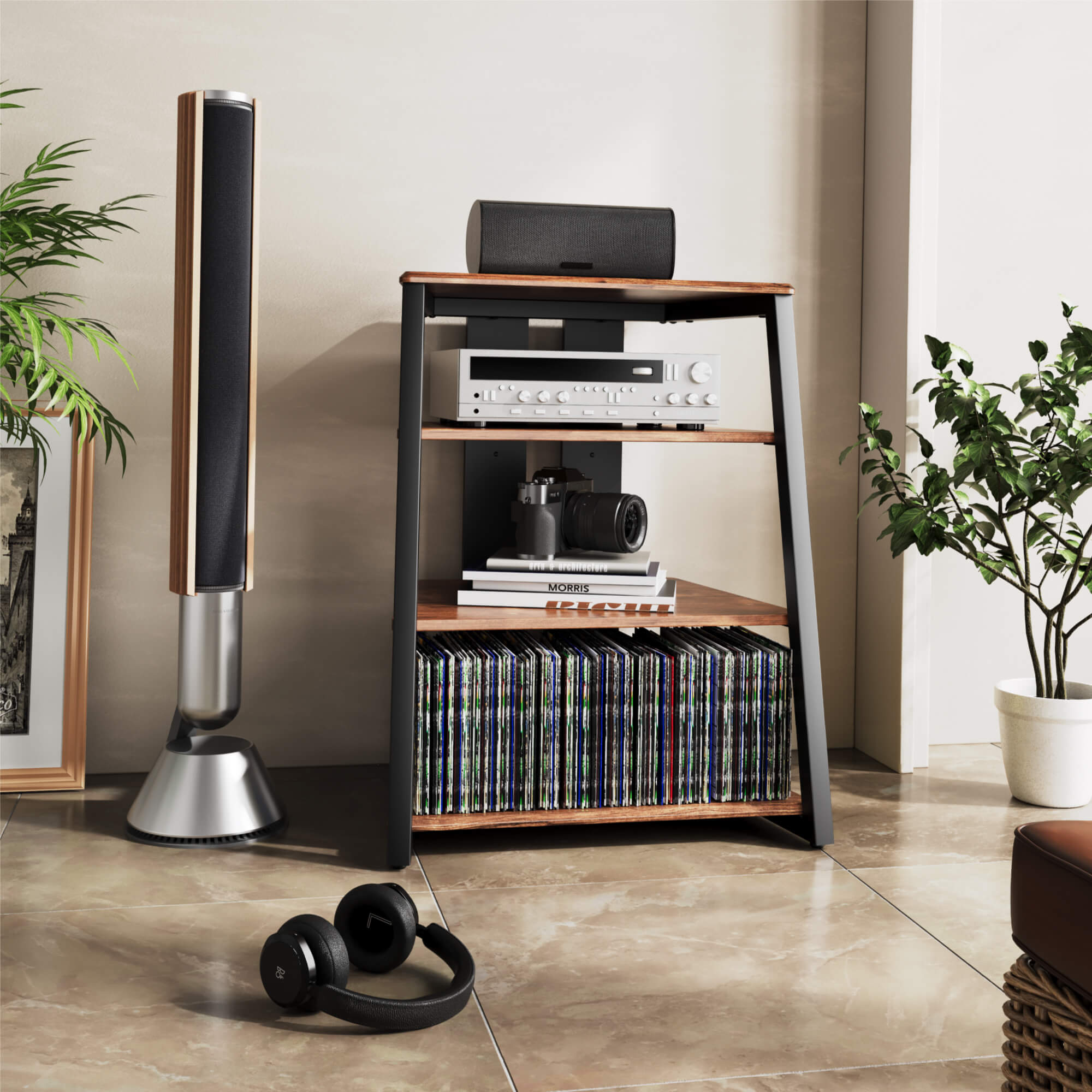 - 強固な構造―厚みのある木材と頑丈な鉄のフレームで作られています。耐荷重能力が高く、重いオーディオ・ビデオ機器を載せても安全にサポートします。